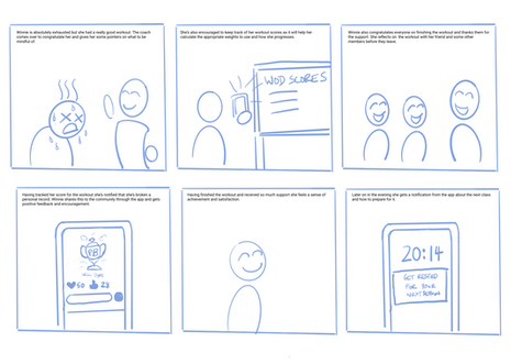 To further visualise how my ideas could be used to develop a solution I created a prospective storyboard that illustrates an ideal scenario of how our product would help Winnie.