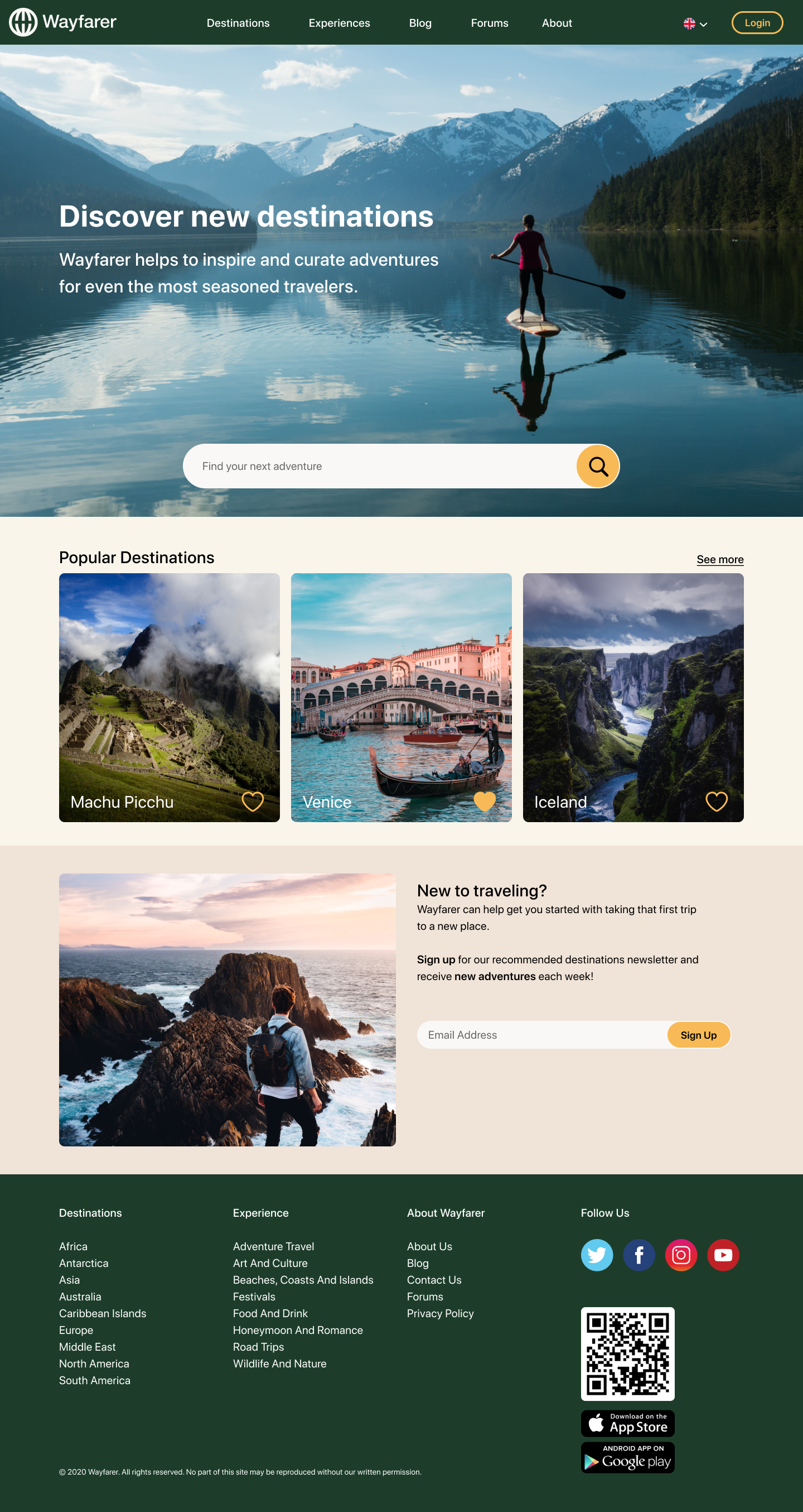 Wayfarer is a website for travelers to discover new locations to visit around the world.